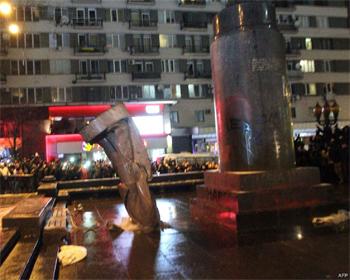 В КИЕВЕ СВАЛИЛИ И РАЗБИЛИ ПАМЯТНИК ЛЕНИНУ