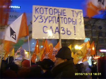 Сергей Удальцов, координатор Левого фронта: "Спутники вместо выхода на орбиту падают в океан. Самолёты падают на землю. Межнациональная рознь нарастает, то что было вчера на Манежной это очень тревожный сигнал для всех нас, это показывает что власть не способна сегодня решать те проблемы, которые стоят перед страной. Они способны только гадить и пакостить… Пора менять эту власть!"