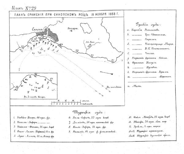 То есть, лишь предположения - при горячем желании напасть самому и повторить Наварин. На самом деле эскадра Осман паши вышла в патрульно-тренировочное плавание (экипажи были новые и неопытные) и в середине ноября из-за шторма (на палубах лежал слой льда в несколько дюймов) укрылась в Синопе. Моряки знают, что с ноября парусники в Черном море плавать избегают, тем более с такими командами, и уж тем более с десантами.