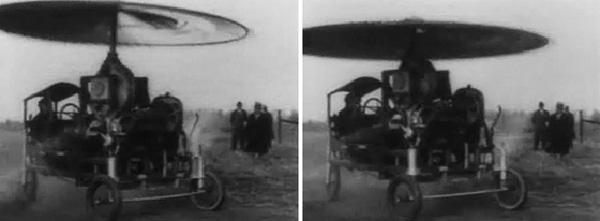 Часто по ТВ показывают кадры кинохроники из истории авиации, где среди допотопных планеров и "этажерок" фигурирует странное устройство - нечто вроде огромного зонта с мотором и пилотом. "Зонт" дергается вверх-вниз, и при его движении вниз аппарат даже отделяется от земли на секунду. (http://poluyan.livejournal.com/ ) Что же это за аппарат, и какое он имеет отношение к летающим тарелкам?