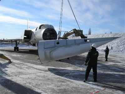 …Нос самолета отделился от фюзеляжа и беспомощно повис на тросах подъемного крана…