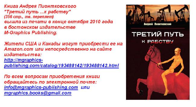 - "Кругозор" в январском номере рассказывал, что здесь, в США, в бостонском издательстве M-Graphics Publishing вышла ваша новая книга на русском языке "Третий путь к рабству" со вступительным словом Гарри Каспарова...