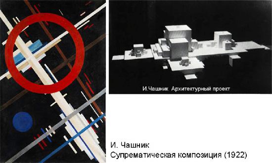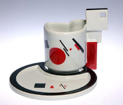 Особенно Леонида занимали работы супрематистов, идейным вождём которых был Казимир Малевич. Само слово супрематизм значит "стоящий надо всем", супер, а вернее - простейший. Идея Малевича была расчленить изображение на элементарные формы и основные цвета, то есть на супер-простые элементы: кубы, прямоугольники, диски, цилиндры и линии. Потом эту геометрию как-то организовать, совершенно отбросив реальность, то есть сделать абстрактную графику из простейших фигур. Понять логически эту идею невозможно, да и не нужно, просто надо смотреть на супрематические работы и чувствовать - это и была главная идея Малевича. С моей точки зрения, супрематизм хорош для декоративного оформления и архитектуры и именно в этих областях работали три его столпа: Казимир Малевич, Илья Чашник и Николай Суэтин. Сегодня, сто лет спустя, супрематизм как стиль оформления выглядит супер-современным. Вот, например, эта посуда - ну не прелесть ли?