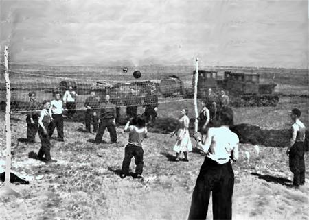 Каждый вечер играю в волейбол через сетку. В команде не только местные, мои сокурсники, но и студенты их МИМЭСХ им. Молотова, их прислали сюда на практику. Все они работают помощниками комбайнеров, водят тракторы. Они живут в палатках, с которых старательно стирают надпись "имени Молотова". (В июне 1957 года состоялся Пленум ЦК, рассмотревший дела "антипартийной группировки", в которую входили В. Молотов, Г. Маленков, Л. Каганович и "примкнувший к ним Шепилов". Члены этой группы были исключены из руководящих органов КПСС, так как выступали за свержение Хрущёва - Б.Ф.).