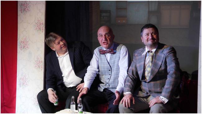 Это последняя премьера бостонского театра "Круг" под руководством Юрия Рубенчика. Литературной основой для нее послужили пьесы М. Зощенко "Свадьба", И. Ильфа и Е. Петрова "Сильное чувство" и В. Ардова "Будни искусства". Режиссер уже не однажды проявлял склонность к созданию спектаклей на основе композиций, им самим искусно выстроенных, перебрасывающих мостик от одной к другой зарисовке, от одной к другой пьесе, и вычерчивающих некую общность, обнаруженную одновременно ироническим и сочувственным взглядом. Нанизанные на одну нить, персонажи из всех трех одноактных пьес обнаруживают сходство, все они маленькие обыватели, над ними можно и смеяться, и жалеть их. По замыслу режиссера- постановщика для того, чтобы представить этих персонажей прошлого, актеры(а они -любители) в этом спектакле должны играть в заостренном пластическом рисунке ролей. И достигает успеха в осуществлении цели. Пожалуй, такого яркого сценического гротеска прежде в спектаклях театра "Круг" еще не было. Но отдадим должное хореографу Владимиру Фойгельману, это также и его очевидная заслуга, постановка танцев и сценическое движение, характерность жестов разработаны и осуществлены им с присущим ему артистическим чувством.