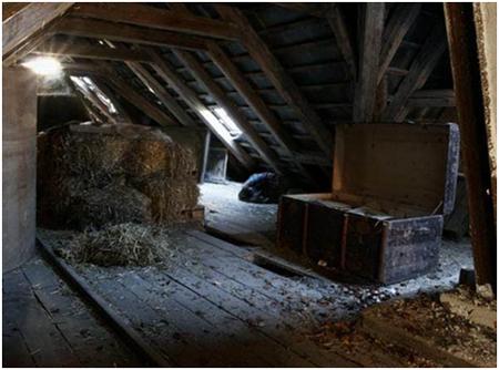 Винтовая лестница вела на чердак, из окна которого мы вылезали на крышу: летом там устраивался солярий, а зимой - прыжки в сугробы. На чердаке находились старинные сундуки с когда-то дорогой одеждой, пересыпанной резко пахнувшим нафталином. Мои подружки любили наряжаться в светских барышень.