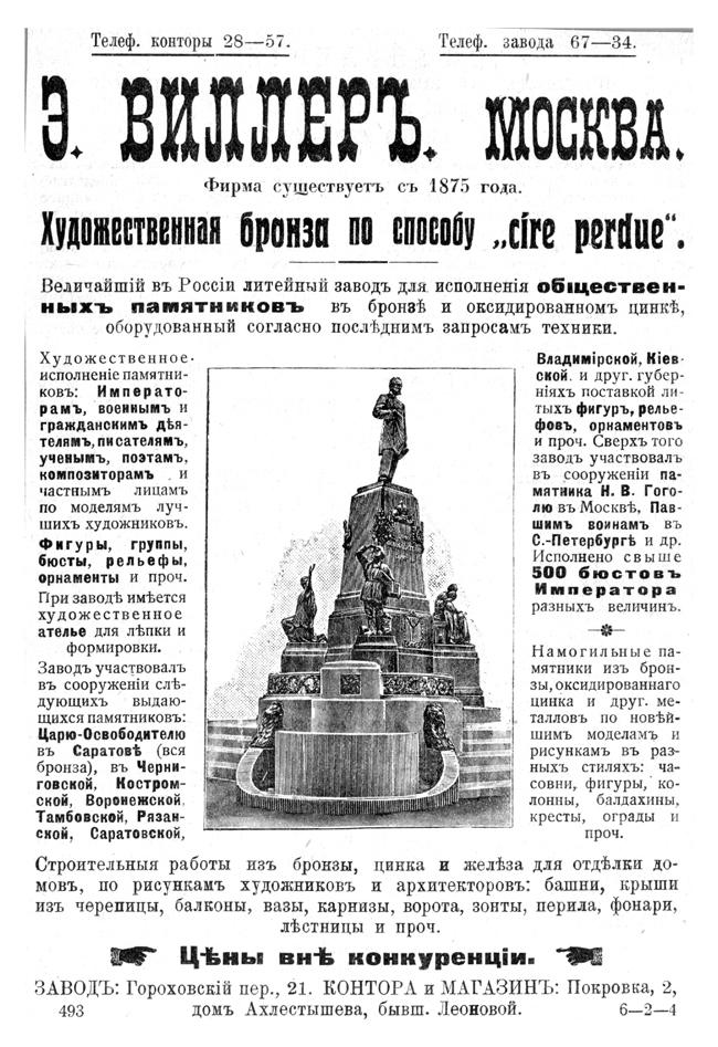 «Художественно–Бронзо–Цинко–Литейный Завод Э.Э.Виллера в гор. Москве.