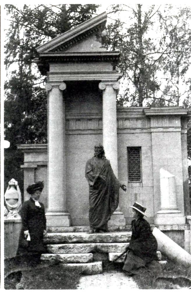 Здесь случайно можно натолкнуться на работы скульпторов С.Коненкова (Птица Сирин на могиле Пришвина), Наталии Крандиевской (беломраморная фигура Христа у фамильной усыпальницы Третьяковых-Рекк), на мозаику художника Петрова-Водкина и усыпальницу архитектора Ф. Шехтеля. (К последним двум я еще вернусь).