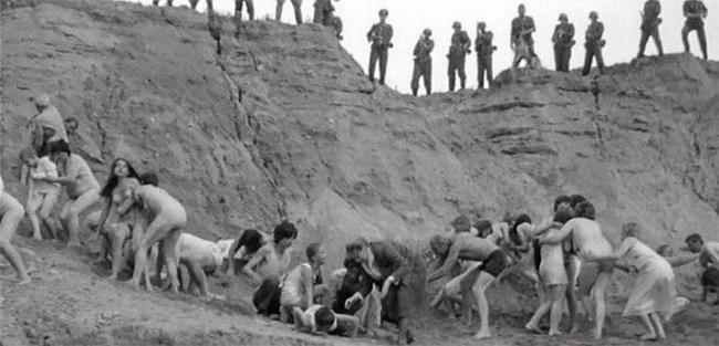 Евреев поставили лицом к яме, стрелки из ваффен-СС прицелились не в грудь, а в голову. В итоге вышло ужасно: черепа разлетались на куски, и лица стрелявших забрызгало кровью и мозгами. Одного из стрелков-добровольцев вырвало, его товарищи, солдаты вермахта, подняли его на смех.