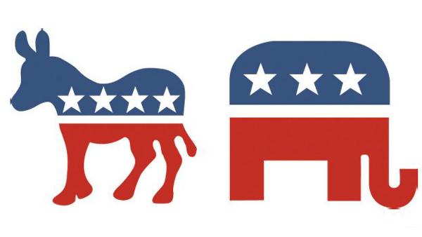 Неофициальный символ демократической партии — ослик (символ упрямого преодоления препятствий), неофициальный цвет — синий. Неофициальный символ республиканской партии — слон (олицетворяет мощь), неофициальный цвет — красный.
