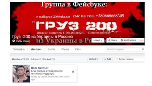 Судите сами: Борис Немцов был членом нашей группы в Фейсбуке "Груз-200 из Украины в Россию". Ниже скриншот с еще старым, самым первым нашим логотипом: