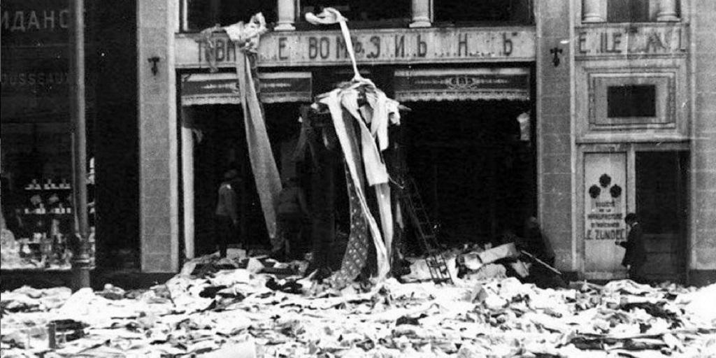 Первый немецкий погром в Петербурге произошел 22 июля (4 августа) 1914 года: раздухарившаяся на патриотическом митинге толпа сначала обратилась к градоначальнику князю А.Н. Оболенскому с требованием уволить всех этнических немцев из телеграфной службы, а затем, не дождавшись ответа, решила сама «навести порядок». Погром длился три дня: были разнесены в щепки посольство Германии (находилось на Исаакиевской площади), редакция газеты «St Petersburger Zeitung», принадлежавшие немцам магазины, парикмахерские и кофейни.