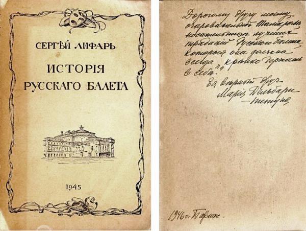 Издание книги Сергея Лифаря по истории русского балета, приобретённая мной там же (Сергей Лифарь, История русского балета, Париж, 1945, стр. 304), оказалась тесно переплетённой с событиями середины ХХ века. Книга напечатана по старой российской орфографии. Обложка и рисунки выполнены художником В.П. Нешумовым. Работа была написана Лифарем до Второй мировой войны. Книга, как написано в комментарии, «была начата набором в 1940 г., но, по обстоятельствам времени, была приостановлена и закончена печатанием в 1945 г.».