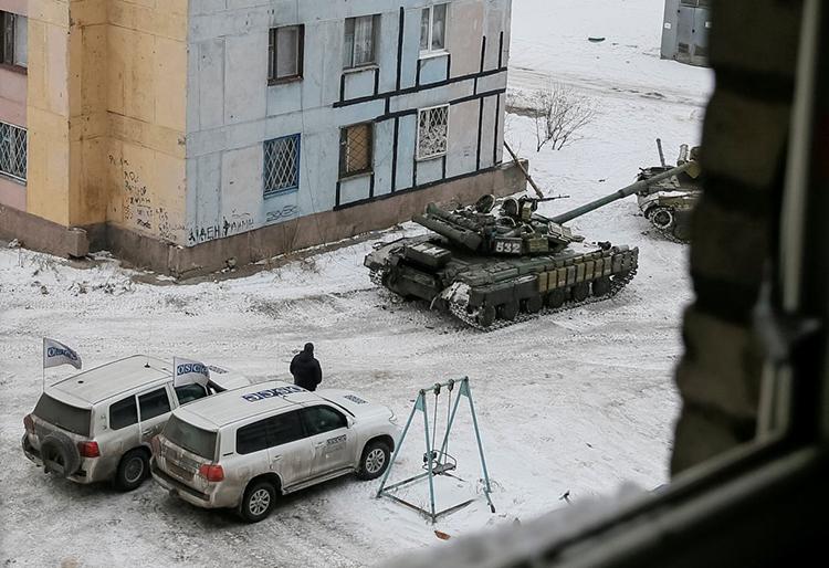 Авдеевка, 2017-й. Украинские танки под присмотром ОБСЕ.