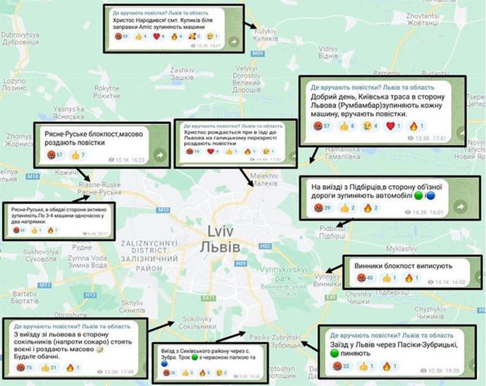 В Ивано-Франковской и Черновицкой областях они теперь вручают повестки до позднего вечера. Во Львовской области в воскресение 15 января устроили одновременную облаву во всех городах: полиция останавливала машины на дорогах, военные дежурили на рынках и возле супермаркетов. Об этих «засадах» львовяне предупреждали друг друга в социальных группах. И поскольку украинцы уже научились издалека замечать раздавателей повесток и поворачивать обратно, те идут на хитрости. В Николаеве они прячутся за углами домов, в Одессе использовали для прикрытия карету «скорой помощи», в Киеве якобы ходили по квартирам в костюме Деда Мороза.