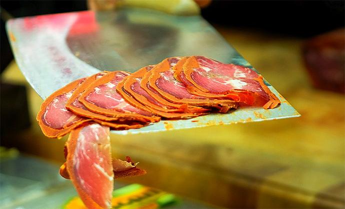 В первую очередь нужно упомянуть о такой вкусной вещи как пастырма. Она представляет собой хорошо провяленную, выдержанную под прессом говядину, щедро обвалянную в особым образом подобранных специях.