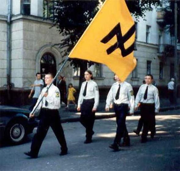 Еще в 1991-м, во Львове, студент-медик Олег Тягнибок и студент-историк Андрей Парубий с группой единомышленников учредили Социал-национальную партию Украины (СНПУ), выступающую за создание «державы украинской нации». Как уже многие догадались, название партии было выбрано не случайно, как и её первоначальный символ «вольфсангель» (волчий крюк). Просто партию с названием «национал-социалистическая» и свастикой на флагах в Украине не зарегистрировали бы ни тогда, ни сегодня (тут западные журналисты ошиблись). А с НСДАП её роднило не только называние и символика, но и наличие силового крыла, именуемого «Патриот Украины» - чьи члены в 2000-2003 г.г. расхаживали по Львову в своей униформе, явно нарочито стараясь быть похожими на немецких штурмовиков. Добавим: кроме СНПУ, своим силовым крылом (Украинской народной самообороной) еще раньше обзавелась партия Украинская национальная ассамблея – так возникла не менее известная УНА-УНСО.