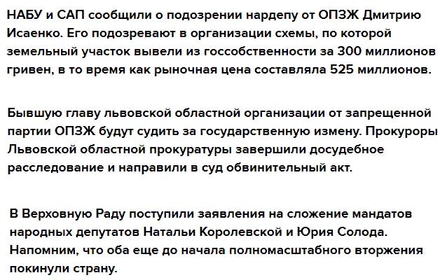 Относительно вопроса Сергея о разгоне ОПЗЖ. Непонятно, зачем Украине партия, в которой немного политиков, а много тех, кто решает свои бизнес-вопросы или является пособником России.