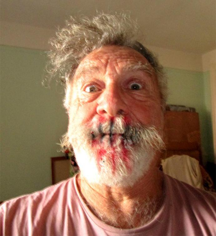 Он плохо слышит, сидит с большой белой канистрой от молока.