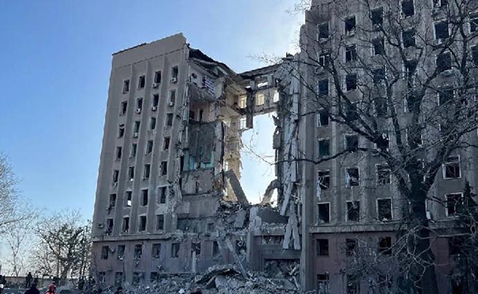 Во-вторых, что слишком уж обращает на себя внимание, украинские СМИ сосредоточили всё внимание на ракетном обстреле в ночь на 28 апреля, в основном на трагедии в Умани, где ракета попала в жилую многоэтажку. И за массой публикаций на эту тему почему-то был почти забыт происшедший сутками ранее массированный ракетный обстрел Николаева – хотя по количеству разрушений, а возможно и жертв, он намного превосходит трагедию в Умани. В частности, от российских «калибров» пострадали один многоэтажный и несколько частных домов, административные здания, колледж и краеведческий музей,а также здание управления судостроительного завода – которое, судя по местоположению «прилетов», было главной целью российского обстрела.