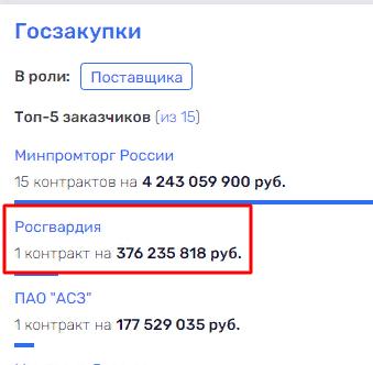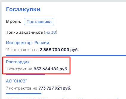 У компании есть контракт на 11.5 млн руб. с Центром специального назначения сил оперативного реагирования Росгвардии (ЦСН СР). Никакого отношения к генералу Драгомирецкому этот Центр не имеет.