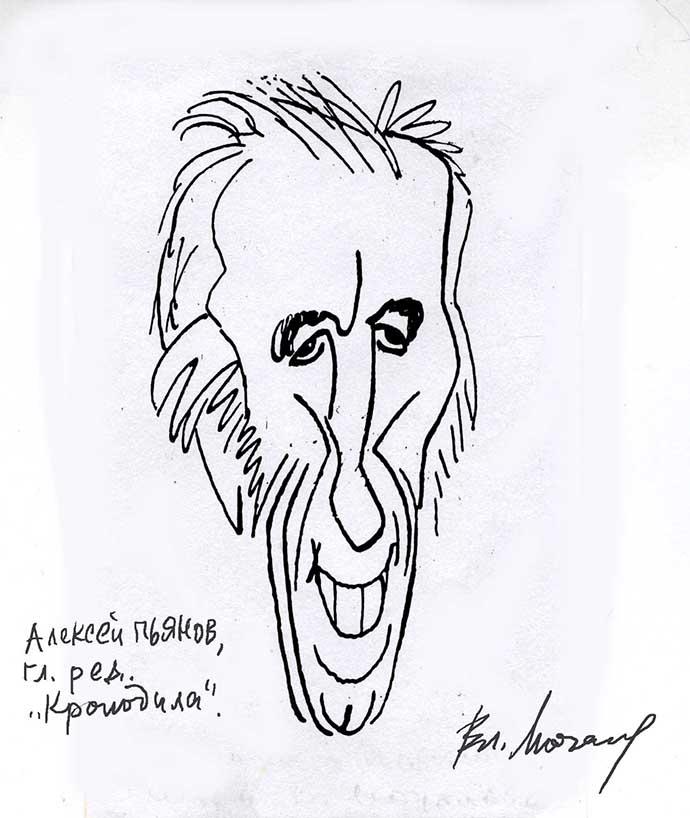 Сегодня он уже мэтр, корифей не только в его коронном жанре – карикатуре, но и в живописи, и в графике. Международно известный художник (в Японии читает лекции студентам-карикатуристам, в Турции в течение месяцев своими рисунками помогает выжить местной газете, в США сотрудничает с Синдикатом карикатуристов Джерри Робинсона, на Кубе, в Югославии, в той же Японии – член жюри художественных конкурсов, во Франции, Германии, Польше, Швейцарии – участник выставок и фестивалей карикатуры и т.д.), лауреат множества премий и призов, участник сотен российских и зарубежных выставок и проч. Наконец, в 2007 году произошло то, что удавалось редко кому из советско-российских карикатуристов – он избран действительным членом Российской Академии художеств. Неслабо звучит: «Академик В. Г. Мочалов»… Стало быть, и у меня есть теперь в приятелях, с которым мы на «ты», всамделишный, совершенно живой академик! А когда-то – просто Володя Мочалов, сначала внештатный автор рисунков, потом как-то вдруг – замглавного художника и наконец – самый главный художник «Крокодила», мой многолетний сослуживец по легендарному «журналу политической сатиры», выходившему тиражом в почти… 6 миллионов экземпляров!..