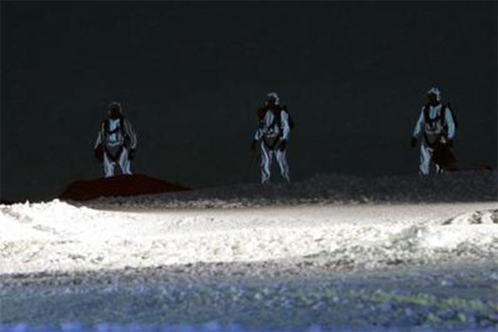 Затем горный воздух разрывают лопасти армейского вертолета. В свете прожекторов, в снежной пыли, на ледник опускается Геркулес. Зрители не успевают следить за лихими трюками сменяющих друг друга каскадеров на мотоциклах, парапланах, снегоходах.