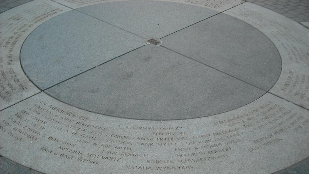 Очевидно иммигранты, на чьи пожертвования был создан мемориал, увековечили имена родных и близких, ставшими жертвами геноцида. В каждом сегменте круга перечислены имена жертв Бабьего Яра.