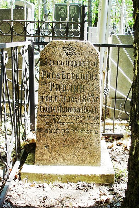 Бабушка Рися родилась в 1863 г. в Лядах, умерла 10 июня 1935 г. в Москве (за месяц до моего рождения). Она жила вместе со своими дочерьми. Похоронена на еврейском кладбище в подмосковной Малаховке. Это было одно из первых захоронений вблизи входа. Сейчас кладбище уже называется "старым еврейским кладбищем" — прошёл без малого век.