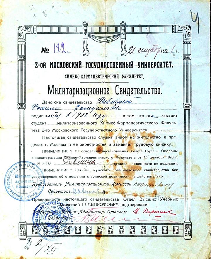 Оглядываясь на первые годы советской власти, обратим внимание на то, что Рахиль, 19-летняя студентка московского университета, в качестве документа получает Милитаризационное свидетельство — чёткий отзвук незаконченной гражданской войны. Косвенно погружение в документы семейного архива это ведёт к расширению знакомства с историей страны.