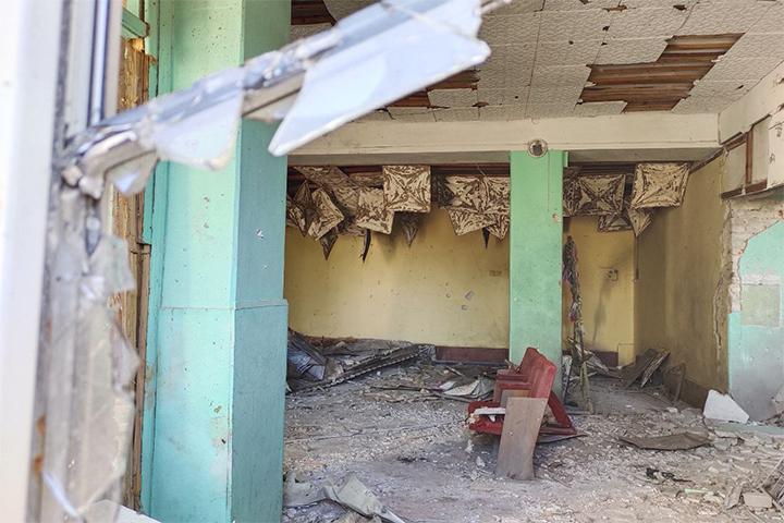 Остатки от пристройки к церкви московского патриархата. И храм, и пристройки вокруг уничтожены русскими снарядами, которыми засыпают весь Донбасс.