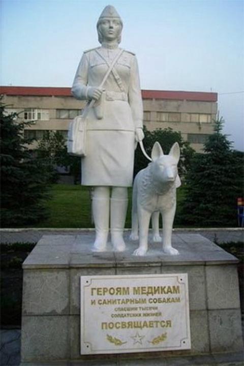 «Санитар шотландская овчарка в защитном белом халате (дело было зимой), найдя раненого, ложилась рядом. У нее на спине была корзиночка с едой и водкой, потом она брала в зубы кожаную блямбу, подвешенную к ошейнику, и спешила к санитару, показывала, что кого-то отыскала, вела хозяина к раненому», - вспоминал Илья Эренбург. За время войны санитарные собаки нашли и помогли эвакуировать с поля боя в госпитали 680 тысяч раненых бойцов, многим из которых они буквально спасли жизнь. И отрадно, что люди этого не забыли.