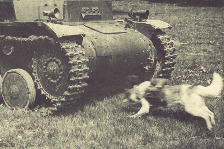 Потом огнестрельное оружие усовершенствовалось, тактика боя изменилась, и на какое-то время о животных-камикадзе позабыли. Вспомнили о них перед Второй мировой, когда в армиях ряда стран, учитывая опыт предыдущей мировой бойни, искали новые способы поразить противника. И вот в 1930-м году некий курсант Ульяновской школы служебного собаководства по фамилии Шошин подал идею использовать собак против танков. Поскольку, понятное дело, собака не может метать гранаты, Шонин предложил привязывать к ней мину с контактным взрывателем. Что творилось в голове и душе этого курсанта, мы не знаем, но видимо с собаками он общего языка так и не нашел, потому что вряд ли вменяемый человек, выбравший для себя призвание собаковода, предложил бы отправлять своих питомцев на убой. К сожалению, идея Шошина была одобрена, поскольку жалость в тогдашнем СССР расценивалась как нерациональное буржуазное чувство. К тому же предложенные методы отбора и дрессировки предполагали использовать в качестве смертников «бракованных» собак, списанных с курсов подготовки пограничных и армейских собак из-за недостаточной прилежности, а также пойманных на улице дворняжек и «мобилизованных» гражданских собак (отнятых у хозяев). Подготовка этих собак-истребителей танков была примитивной и жестокой: собак периодически морили голодом, а потом давали им еду, которую клали под днище танка. Привыкнув к этому, уже на фронте несчастное голодное животное бежало к танку противника с единственным желанием покушать – и цеплялось за броню рюкзачком со взрывчаткой. Что тут сказать? Это подло! Обманывать животное - все равно, что обманывать ребенка. Разница только в том, что животное не заплачет от обиды, тем более погибшее.