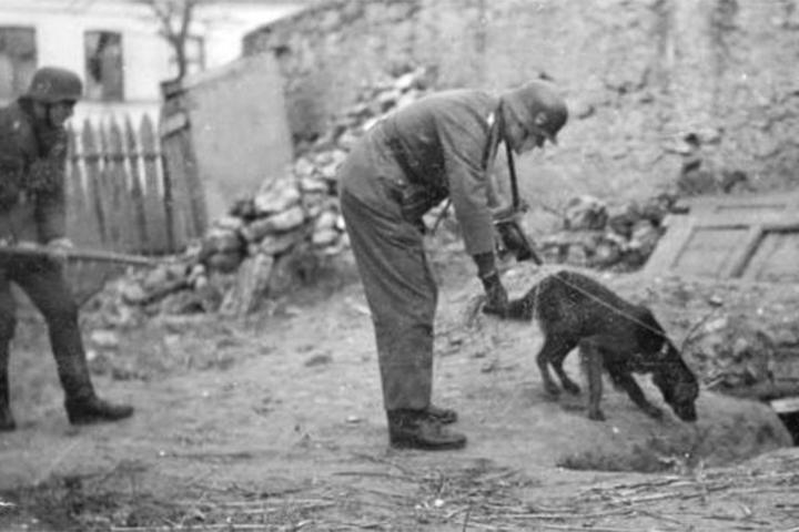 Причем, в разведку собак отбирали особенно тщательно! Самое главное, они не должны были лаять, чтобы не выдать собственную разведгруппу. Унюхав или услышав противника, пес-разведчик замирал в особой стойке. Он должен был различать такую опасность, как мины. Он не должен был подбирать с земле никакой еды – ведь противник был в курсе таких собак, и вырабатывал методы борьбы с ними (это же касалось и охранных собак, которых могли отравить заключенные). Ну и, конечно же, совершенно незаменимыми и по сей день стали собаки-саперы. Ведь если электронный миноискатель реагирует только на металл, а поиск мин с помощью щупа чрезвычайно рискован, то собака могла по запаху обнаружить любую тщательно замаскированную мину, даже в деревянном или пластиковом корпусе. За время Второй мировой собаками-саперами были обнаружены более 4 миллионов мин – от маленьких противопехотных, которыми щедро «засевали» поля, до спрятанных в фундаментах мощных фугасов.