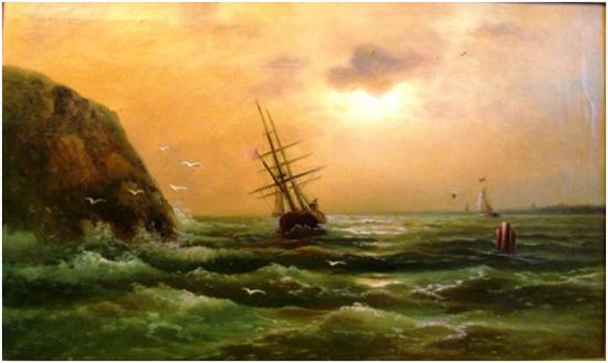 Этот сюжет связан с именем Ивана Константиновича Айвазовского, одного из самых известных российских художников и наиболее выдающимся российским маринистом. Творческое наследие художника составляет около шести тысяч картин, множество рисунков и акварелей. В работах Айвазовского захватывает естественность жизни морской стихии. При этом художник не работал на натуре, он все писал в стенах своей мастерской. Работал с необыкновенной быстротой. Пример: в последний день своей жизни он начал новое полотно "Взрыв корабля". Большая часть работы к вечеру была сделана. Доработку он оставил на следующий день, которого уже не случилось.