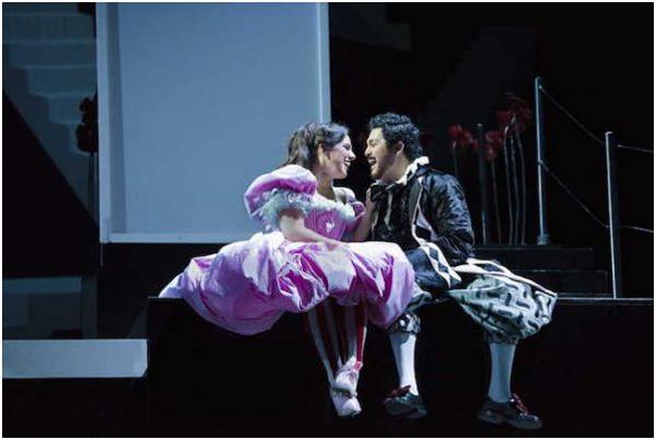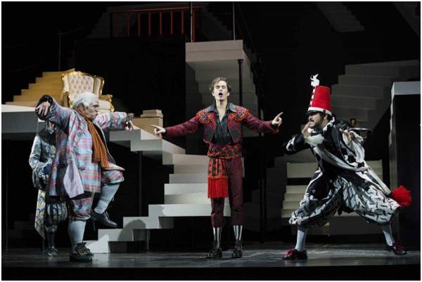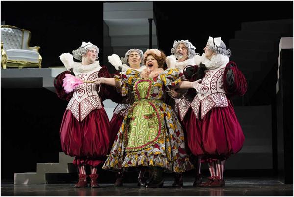 Скажем, доктор Бартоло, утверждающий, что его не проведешь, стоит на фуре слева, там его покои, а Розина, поющая свои знаменитую каватину "В полуночной тишине" и арию "Я так безропотна" о том, что она все поставит на своем, на фуре справа, словно в башне, где она заперта. Привычных для постановки этой оперы павильонных декораций нет. Герои словно парят наверху, редко спускаясь вниз на сцену. Оформление спектакля выполнила художник Джулия Нулин-Мерат. А сценические костюмы в озорном буффонном стиле, продолжив игровую линию декоратора, придумала Джианлука Фалаши.