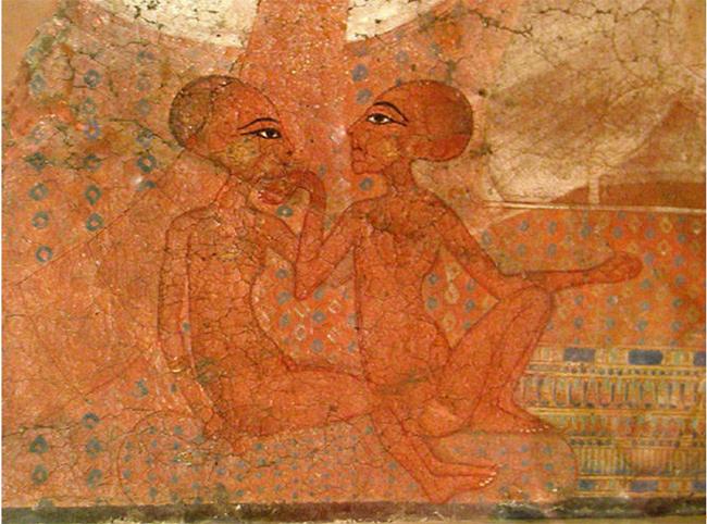 Дочери Эхнатона. Фрагмент росписи из Амарны. 14 в. до н.э. Дочери Эхнатона: продукт инцеста или искусственного деформирования черепа?