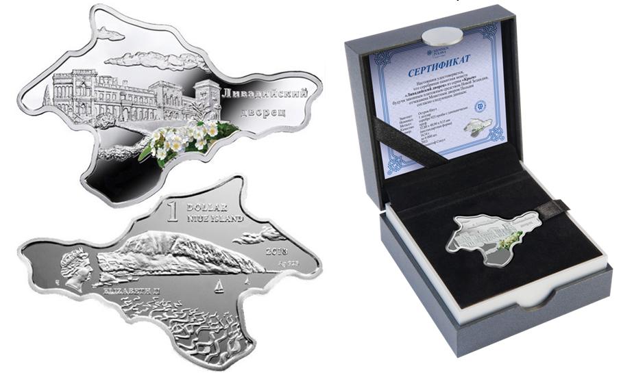 Слоняясь по бескрайним просторам всемирной паутины, я наткнулся на фото новозеландского доллара, государства Ниуэ, выпущенного монетным двором Польши(!) в форме... Крымского полуострова!