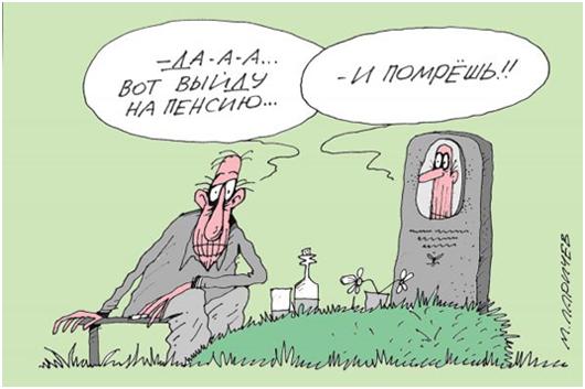 Постараемся в двух фразах сформулировать соль благостности нынешней пенсионной реформы. Жизнь в годы после нынешнего пенсионного возраста состоит в удовольствии продолжать работать на любом поприще и при этом ни в коем случае не получать позорящие и обессиливающие пенсионные выплаты. О, ужас! Пенсия по старости... Каждый, достигший пенсионного возраста, хочет чувствовать себя молодым. А тут - документ о старости... Поношение, оскорбление, кто это хочет перенести. Долой оскорбление, продлим молодость души - отодвинем уничижительную классификацию...