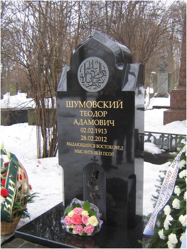 Санкт Петербург, 2 февраля 2013 года. Сто лет со дня рождения Т.А.Шумовского. На Литераторских мостках Волковского кладбища собрались те, кто пришёл почтить память Великого Учёного. Были возложены цветы от консульств Азербайджана, Украины, Узбекистана, Казахстана, Киргизстана, Пакистана, от татарской национально - культурной автономии Санкт Петербурга, от союза поляков Санкт Петербурга. Панихиду на могиле отслужил католический священник.