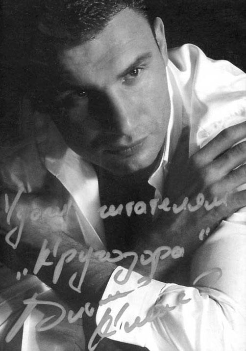 Виталий КЛИЧКО: Я начал свою карьеру боксёра с поражения. Мне тогда еще не было четырнадцати лет, весил я, наверное, килограммов 50, а рост был ниже 170 см. Лишь в период с восьмого по девятый класс я вырос на 20 см. И признания от первого тренера я не получил. Всё у меня вышло как-то анекдотично. Когда он пришел к нам в школу приглашать на занятия боксом, понятно, мы записались всем классом. Он посмотрел данные каждого из нас, проверил подвижность и остальные качества, после этого глянул на меня и в присутствии одноклассников сказал: “А вот ты не очень подходишь”… Итак, все подходят, а я – нет! Ну, конечно, я был тогда тоненький, хиленький, но это меня крайне задело. И я сказал себе: «Я ему докажу!»...