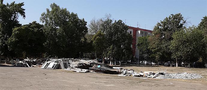 И всё выносили на мой пустырь. Следующий снимок – очередная иллюстрация к моему рассказу – был сделан в начале возникновения свалки. Со временем покрыто было всё пространство. И по тому, как небрежно и даже безразлично относились ко всему, что выносилось из здания, было ясно, что абсолютно всё, кроме стен, будет заменено на новое: все полы, двери, окна, мебель, кровля и прочая.