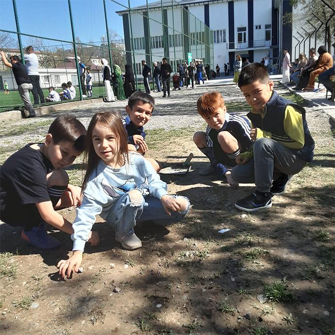 На фото: девочка – Эвита, слева от неё – Алан, за ней – Алибек, справа от него – Эмин (голова – солнечная!), последний – Камрон.