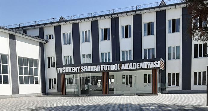 Ниже – тот же ракурс здания, что на предыдущем снимке, но после реконструкции (фото от 23 марта 2023 года). Слова крупными буквами над входом означают: Ташкентская городская академия футбола.